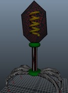 While the group could use a generic free model for the human side, this was not feasible to do for a level about a virus. I created the virus character based on look of a bacteriophage. Creation consisted of modeling, texturing, rigging, and animating each of the character's movements.